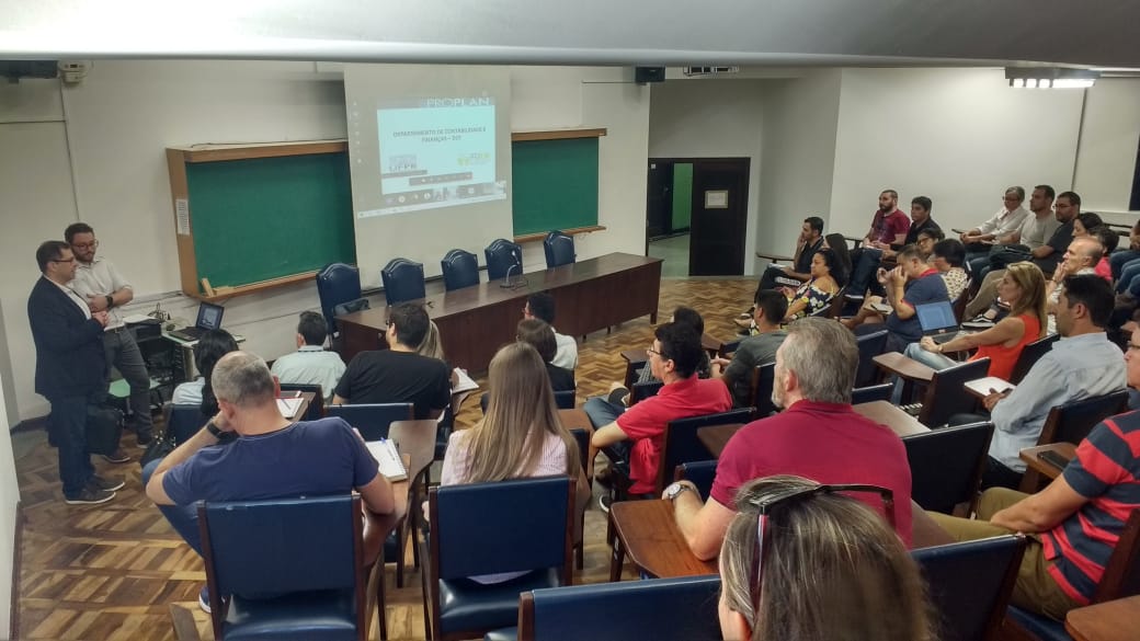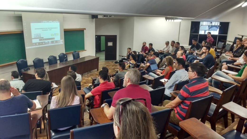 Além disso, foram discutidas novas categorizações contábeis como o “Em Liquidação” que permite maior harmonização às Normas Internacionais de Contabilidade Aplicada ao Setor Público (IPSAS); apresentação da proposta do novo sistema de integração financeira da universidade; os relatórios de controle orçamentário disponíveis no SIAFI; e demais avisos pertinentes.